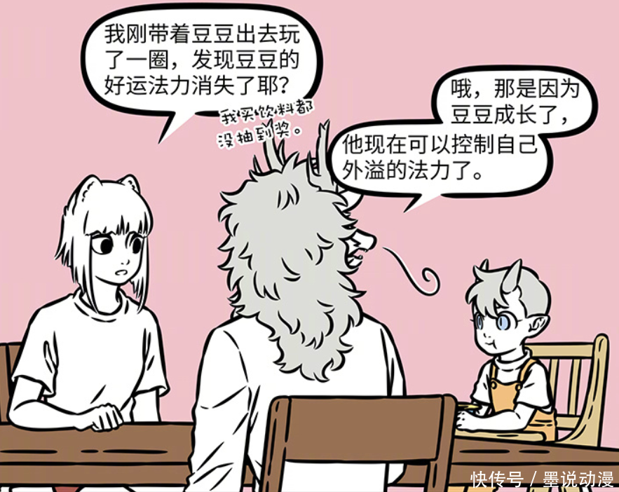 九月带着豆豆去逛了一圈,发现豆豆的好运法力消失了。主要是因为九月买饮料,发现都中不了奖。敖烈告诉九月,这是因为豆豆长大,他现在可以控制外溢的法力。这样对于麒麟来说,倒是好事,不会随便给加太多好运。